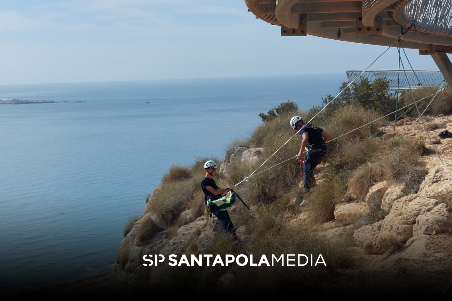 Con la colaboración de la concejalía de Medio Ambiente, recogieron unos 30 kilos de basura en la zona de pino bajo alrededor del mirador y en la ladera del Cabo, donde actuaron con las medidas de seguridad requeridas en los trabajos verticales.