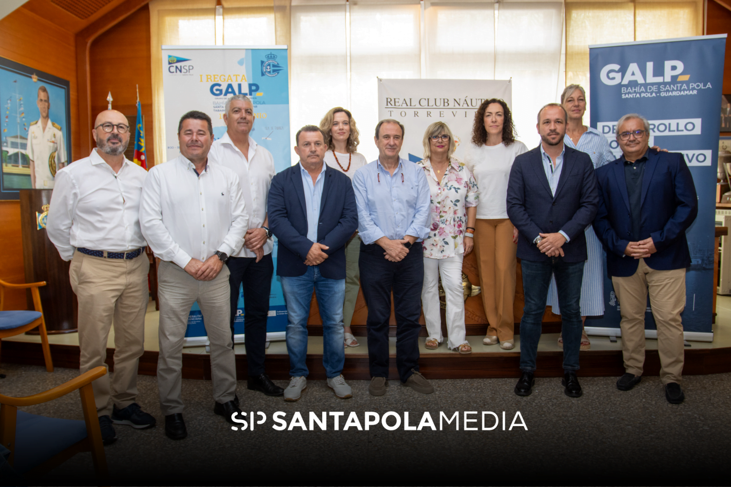 La I Regata GALP Bahía Santa Pola ha tenido hoy su puesta de largo en Torrevieja. Un acto institucional en el que han tomado parte Loreto Serrano, alcaldesa de Santa Pola y vicepresidenta del GALP (Grupo Acción Local de Pesca) Bahía de Santa Pola; Rosario Martínez, vicealcaldesa de Torrevieja, acompañada por Antonio Vidal y Diana Box, concejales de Medio Ambiente y Pesca y de Deportes, respectivamente; Argentina Bonmatí, gerente del GALP; Carlos Torrado, presidente de la Federación de Vela de la Comunitat Valenciana (FVCV); Pedro Carmona Patrón Mayor de la Cofradía de Pescadores de Torrevieja y vocal del GALP y los presidentes de los clubes de Torrevieja y Santa Pola: Carlos Carmona y Pascual Orts vocal y secretario del GALP respectivamente.